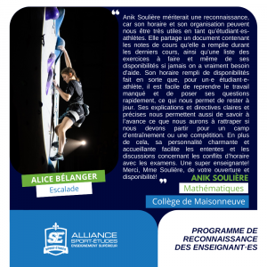 This entry was posted on vendredi, avril 11th, 2025 at 14 h 46 min and is filed under . You can follow any responses to this entry through the <a href='https://www.cmaisonneuve.qc.ca/anik-souliere-honoree-pour-son-soutien-exceptionnel-envers-une-etudiante-athlete/cdm_anik-souliere/feed/'>RSS 2.0</a> feed. Both comments and pings are currently closed.