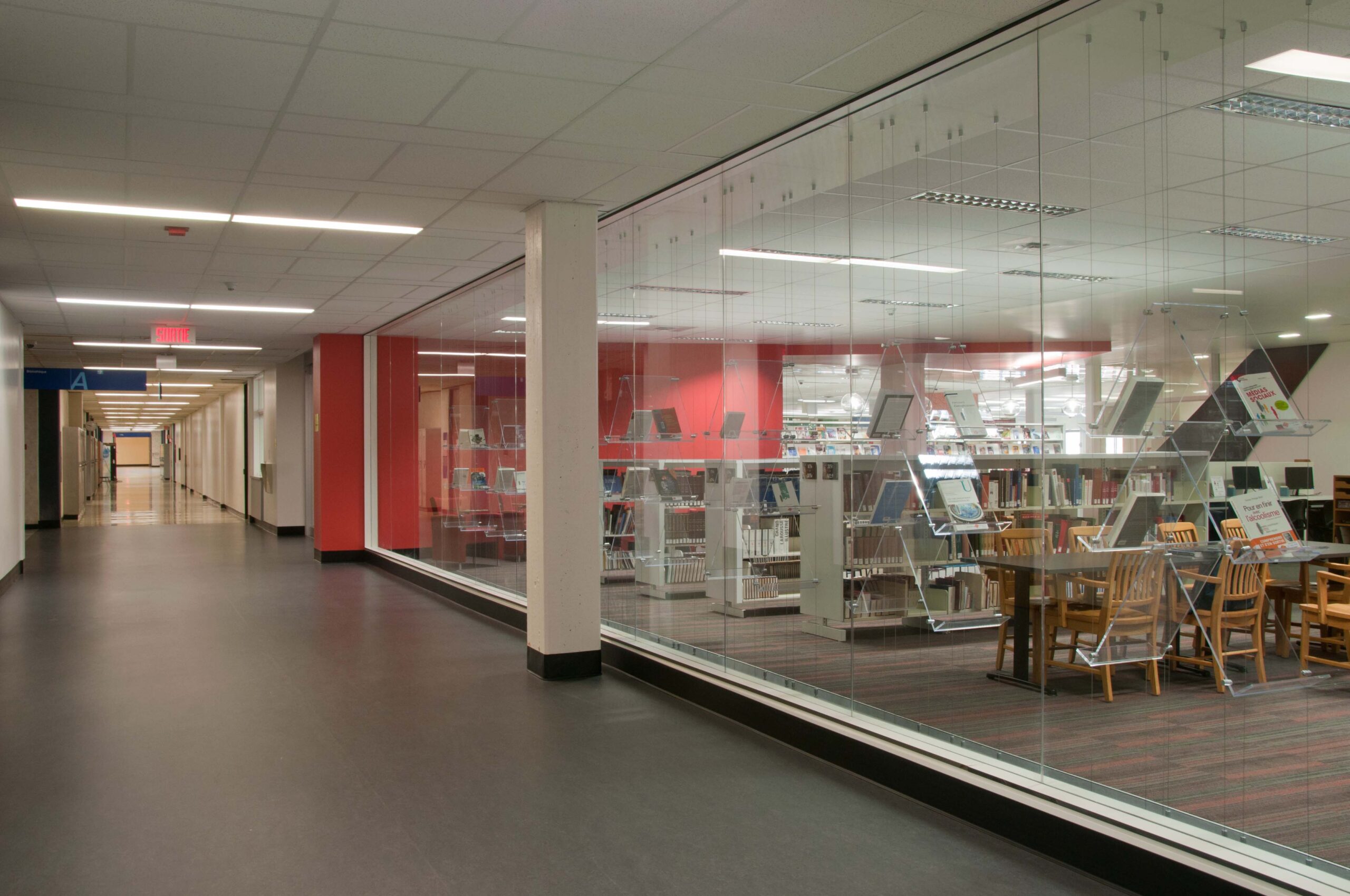 Entièrement réaménagée en 2011-2012, la bibliothèque Gabriel-Allard du Collège de Maisonneuve est située au 4e étage du campus 3800, local D-4690. Elle possède :