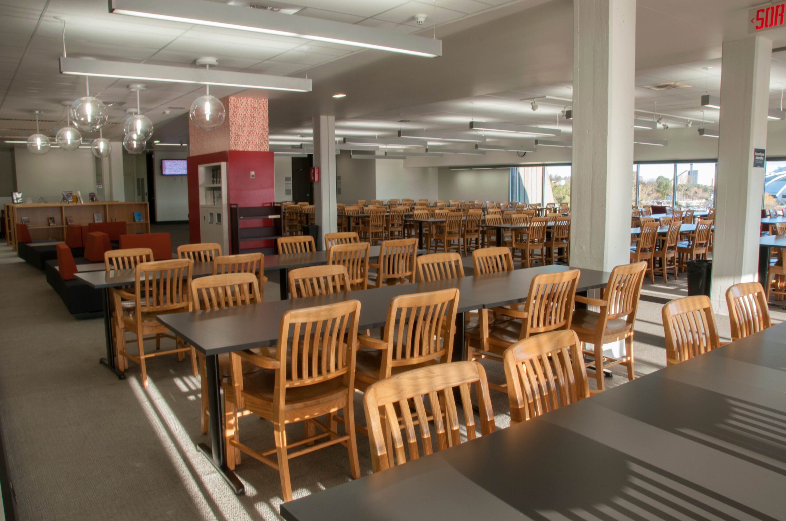 Au 2e étage, les étudiants peuvent profiter d’une magnifique vue sur Montréal durant leur période d’études à la bibliothèque.