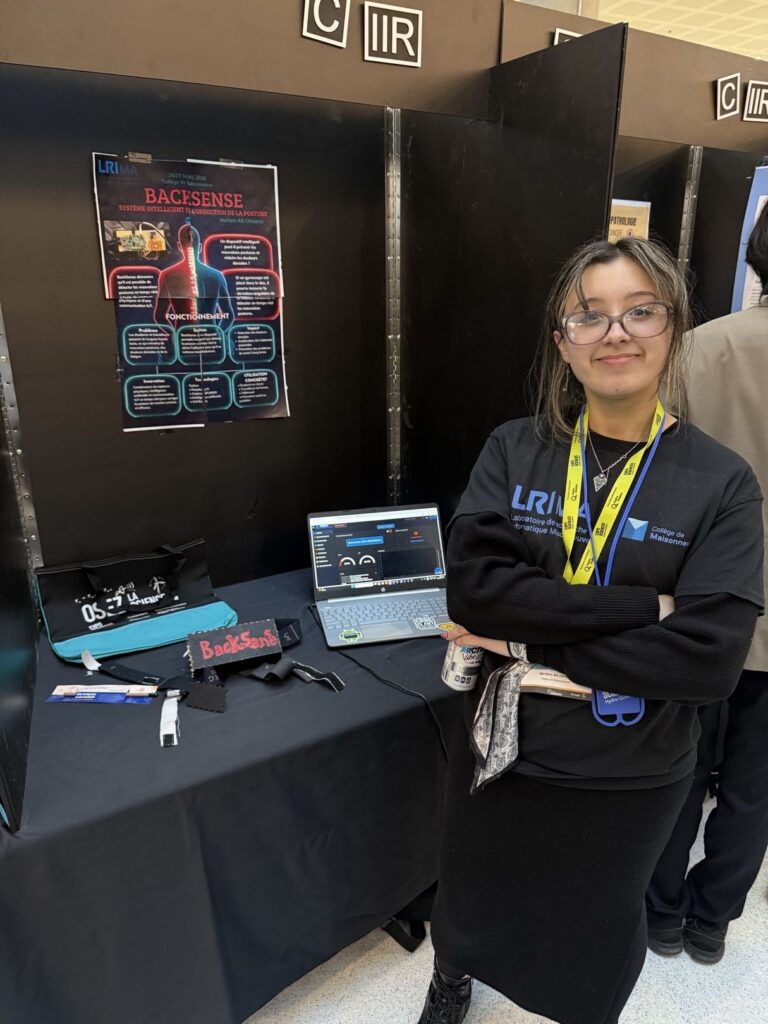 Le projet technologique BackSense mené par Meriem Ait Otmane (Techniques de l’informatique, Développement d’applications) a été conçu pour aider les personnes à corriger leur posture et à prévenir les douleurs dorsales liées à une mauvaise position. Le projet consiste en un dispositif portable intelligent capable de détecter en temps réel les mauvaises postures du dos et d’alerter l’utilisateur afin qu’il puisse se corriger immédiatement.